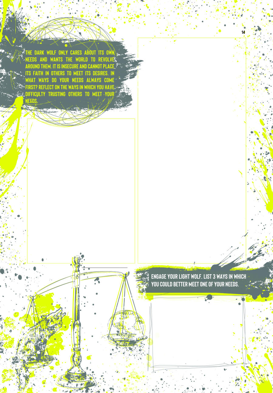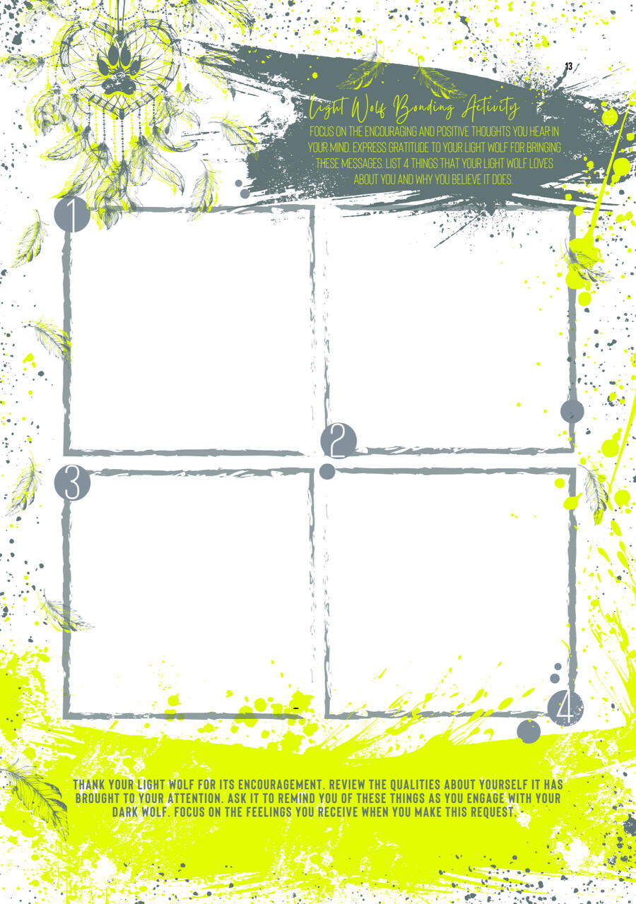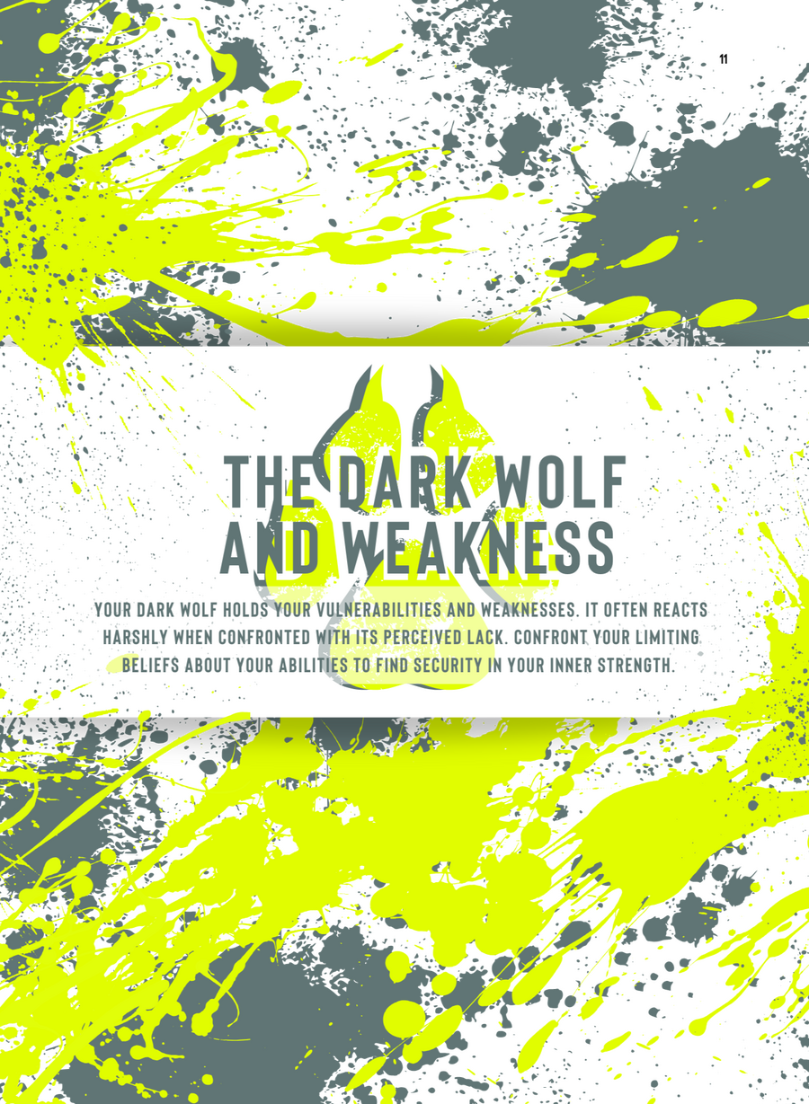 There is popular proverb that speaks of the two wolves we all carry within us. It attempts to explain the inner conflict we experience within by using the metaphor of an ongoing battle of two wolves, one that is darkness, despair, and evil, while the other represents light, hope, and goodness. An innocent inquiry is made, “Which one will win?” The response, “The one you feed the most.”This answer is straight to the point but only begins to touch on the relationship we have with our dark wolf. Furthermore, this metaphor does not really help us understand what are dark wolf is, nor how to manage a hungry being that cannot die as it is a core part of ourselves. Both wolves are going to be fed over a lifetime, even if the tending of the dark wolf is done in subconscious secret. The real power of this metaphor is not to try and control your wolves through feast and famine, and declare a final winner, but rather to train them to consume the right food in a healthy way. A balanced way. This can only be done by understanding your dark wolf, its needs and desires, because they are your needs and desires.The Dark Wolf Shadow Work Guide is filled with questions designed to shed light on the ways in which your dark wolf impacts the quality of your daily life. By examining relationship conflict patterns, taboo impulses, self-destructive behaviours, unacknowledged pain, and the toxic nature of your inner shadow wolf, you can free yourself from the uncontrolled influence of your dark wolf.Filled with empowering training activities this journal also focuses on turning your insights into actionable items to engage with both your shadow and light wolves in a constructive way. Your engaged light wolf evolves into the powerful guardian it is meant to be and your dark wolf is trained to become an active asset on your soul journey by channelling darker impulses into constructive tasks. Through balance your companion wolves learn to work together for your benefit.TAKE A GUIDED DECENT INTO YOUR CORE AND INTEGRATE YOUR:> Weakness > Anger > Deception > Fear > Burdens > Protection > Inner Child > Relationships